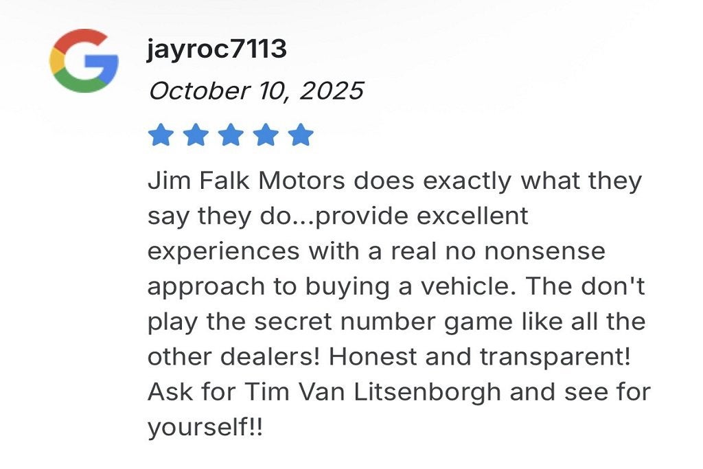 Reach out today and see how buying a car should be -- fun and easy! Feel confident in your purchase knowing that Jim Falk Motors offers the real lowest pricing with no hidden fees or forced add-ons. Then enjoy working with our friendly sales and finance team who can schedule fast home delivery regardless of your location! Check thousands of happy customer testimonials from all over the United States in the "About Us" section on the main menu. Want to purchase in person? We'd love to see you! We are conveniently located in Clinton, MO, halfway between Kansas City and Springfield. And remember! We have no documentation fees, admin fees, or processing fees -- absolutely no fees here! *As Low As 1.90% available with approved credit on select terms. Call dealer for details.