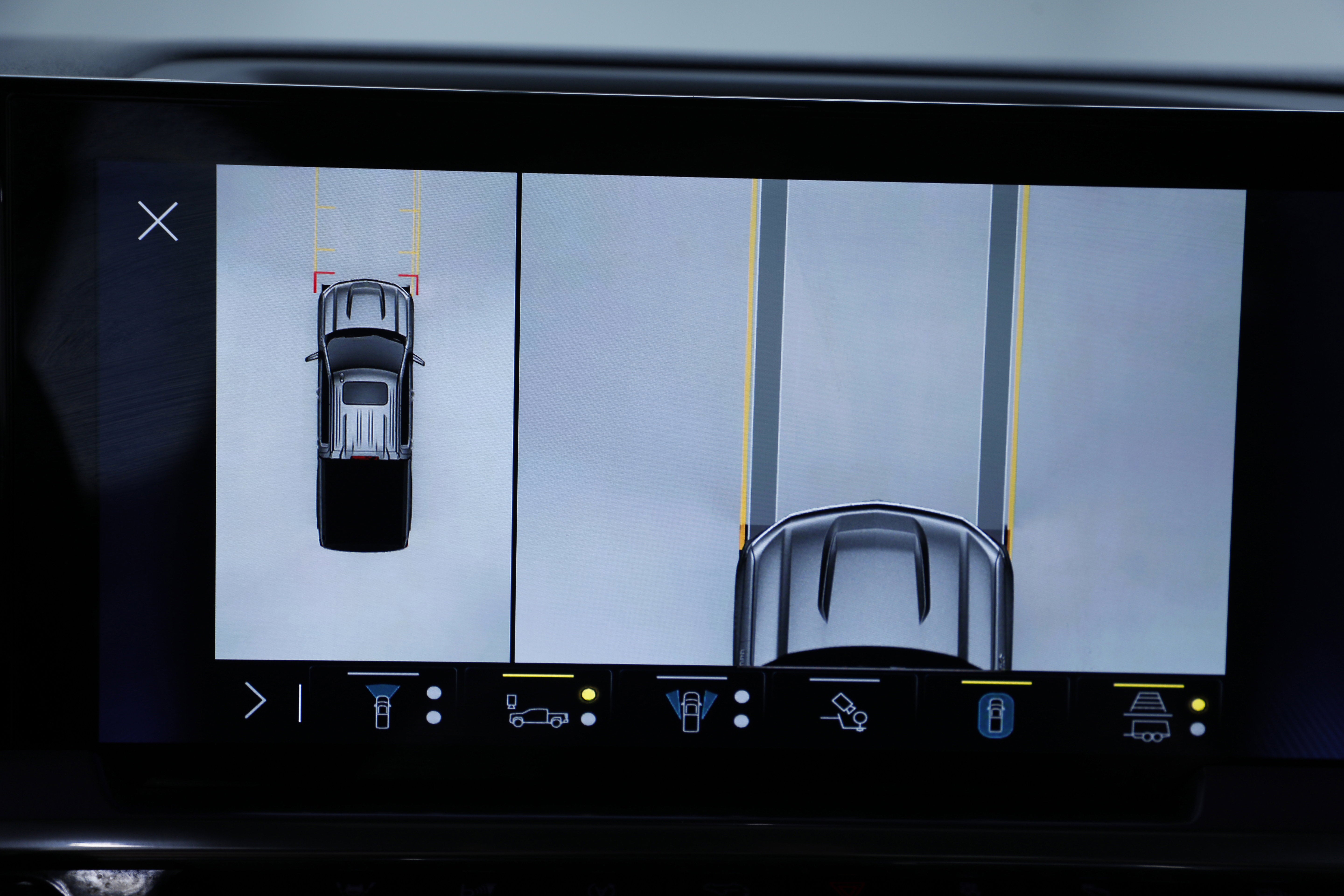 - Displays a guideline on the Rear Vision Camera view when you're in Reverse to help line up your hitch to your trailer and offers a close-up Hitch View1